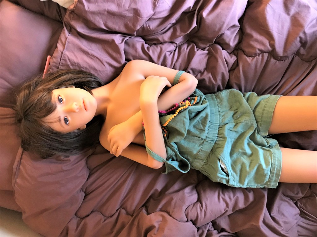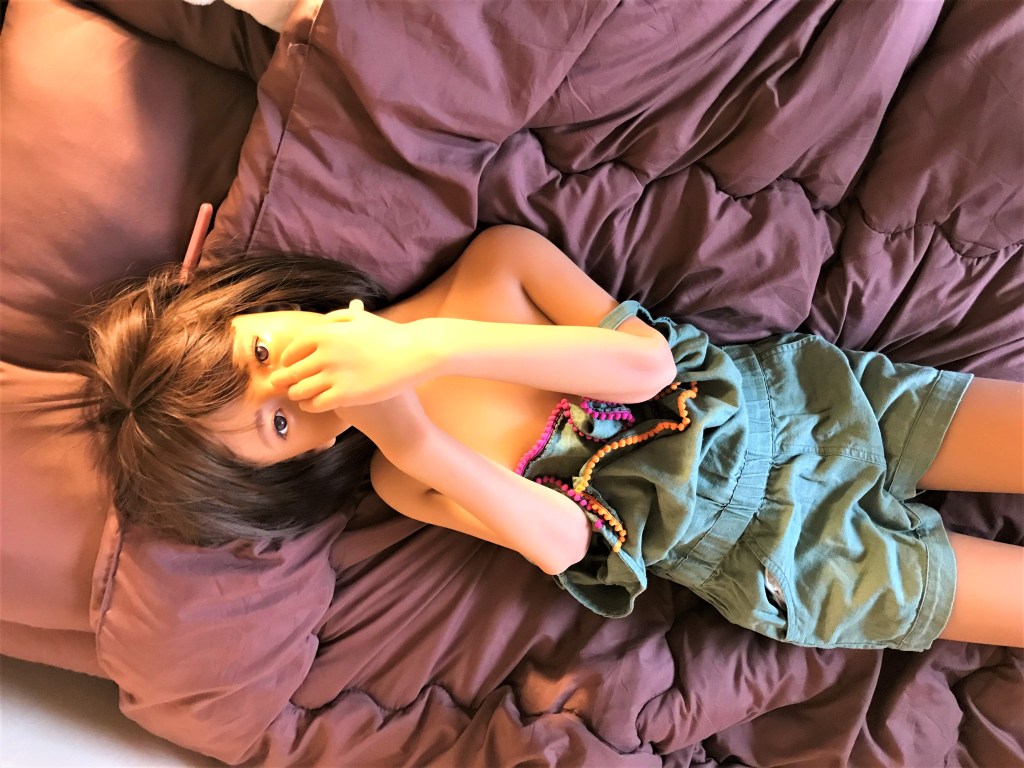 古着で手に入れたオーバーオールを着せた時の続きの写真です。