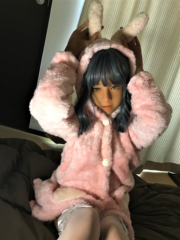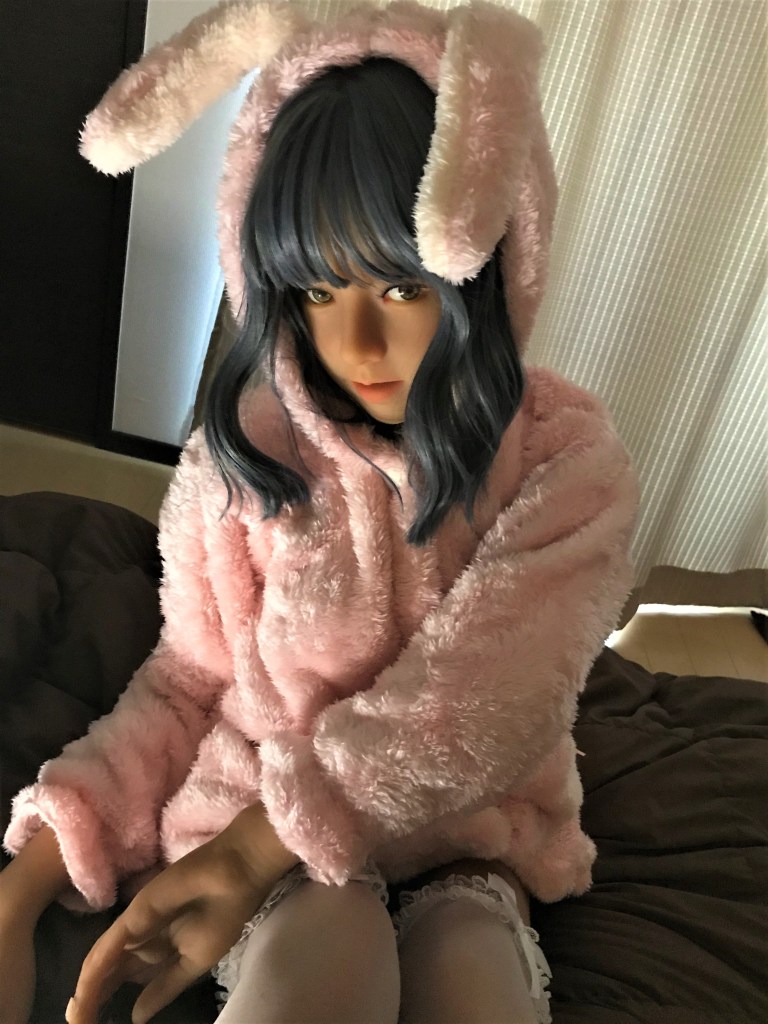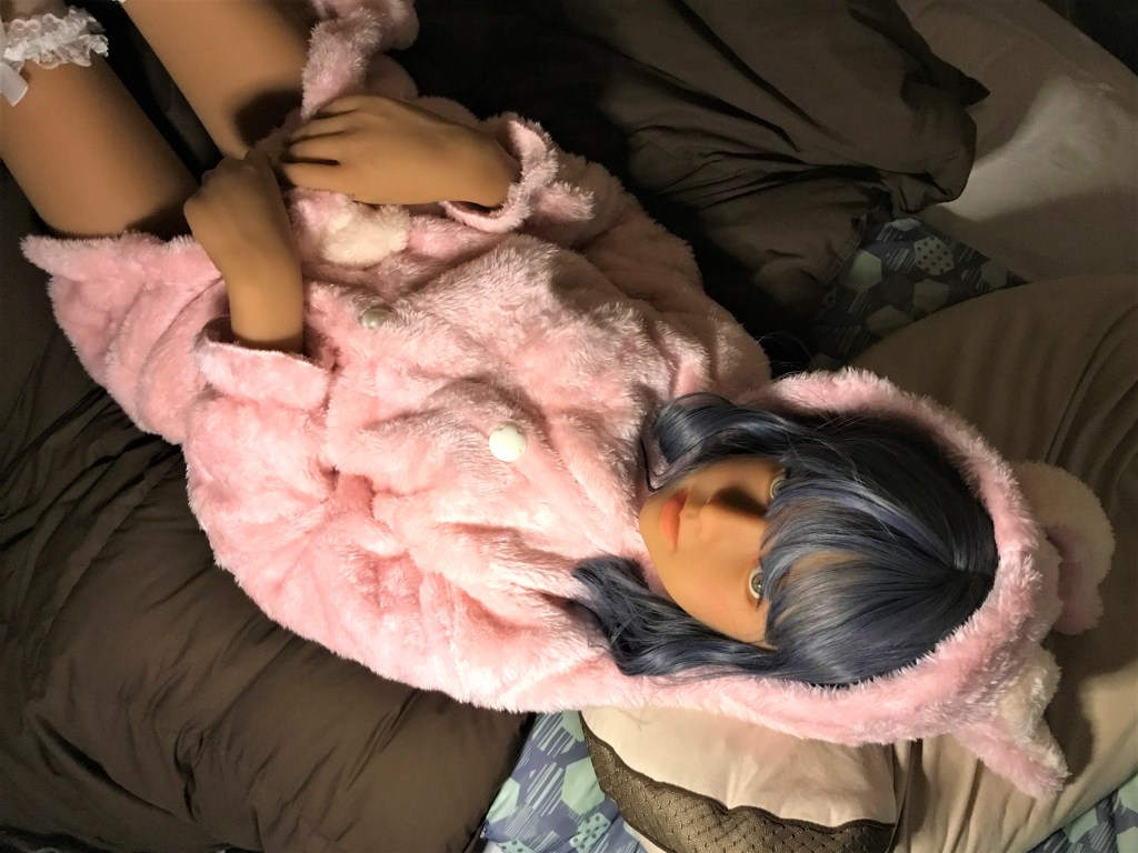 兎の着ぐるみ見たいな寝間着で、手触りが良くて抱きしめても冷たくないので冬場の添寝にぴったりですね。