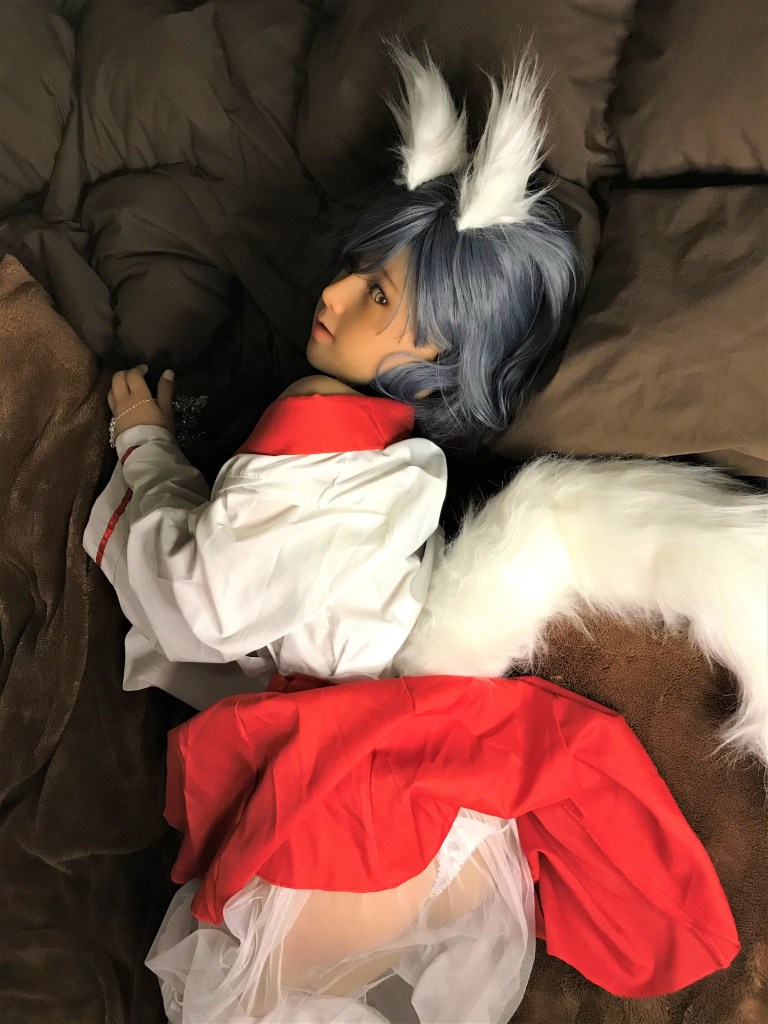 正月ということで、巫女と狐の組合せ。巫女服は丁度いいサイズがなかなか売ってない(130・140㎝)のでレディースSサイズを着せてます。ちょっと大きめ。